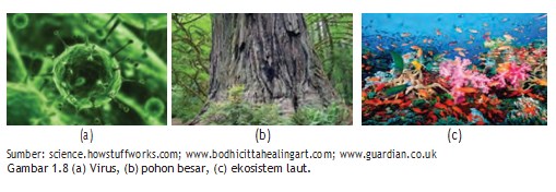 Objek tersebut dapat berupa benda yang sangat kecil (renik), misalnya bakteri, virus, bahkan partikel-partikel penyusun atom, juga dapat berupa benda-benda yang berukuran sangat besar, misalnya lautan, bumi, matahari hingga jagat raya ini.