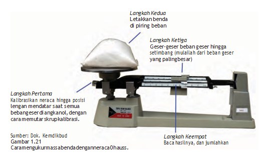 Untuk menimbang massa benda dengan neraca Ohauss.